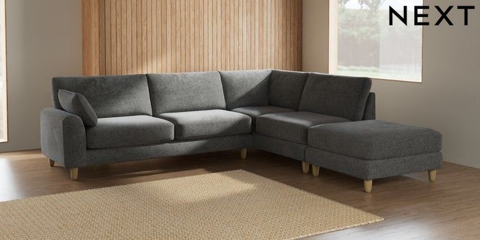 7.2.10 Campbell Large Open End Corner Chaise - Right Hand Chunky Chenille Dark Grey High Leg - Light | Made Click here to use our website with more accessibility support, for example screen readers