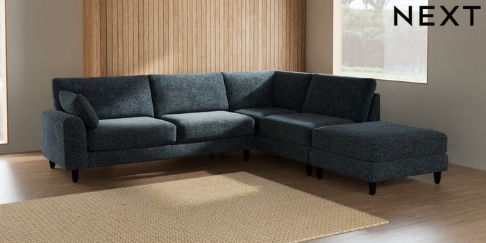 7.2.10 Campbell Large Open End Corner Chaise - Right Hand Chunky Chenille Dark Navy Blue High Leg - Dark | Made Click here to use our website with more accessibility support, for example screen readers