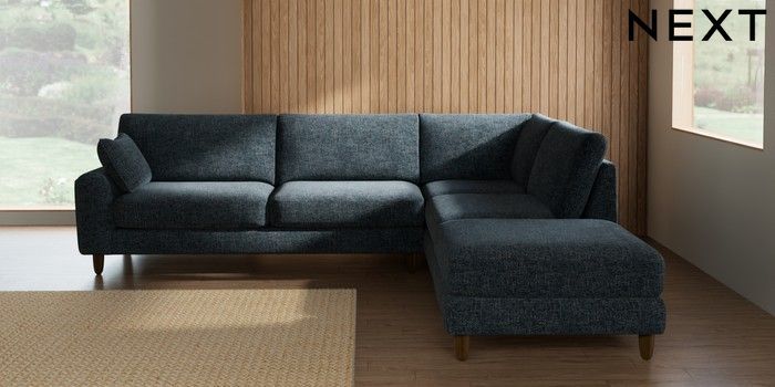 7.2.10 Campbell Large Open End Corner Chaise - Right Hand Chunky Chenille Dark Navy Blue High Leg - Mid | Made Click here to use our website with more accessibility support, for example screen readers