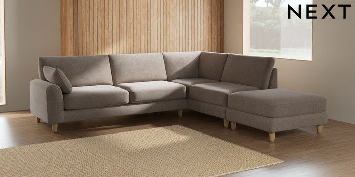 7.2.10 Campbell Large Open End Corner Chaise - Right Hand Chunky Chenille Light Dove High Leg - Light | Made Click here to use our website with more accessibility support, for example screen readers