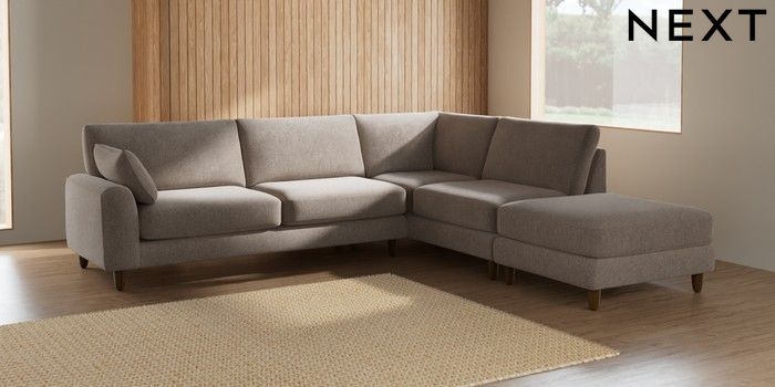 7.2.10 Campbell Large Open End Corner Chaise - Right Hand Chunky Chenille Light Dove High Leg - Mid | Made Click here to use our website with more accessibility support, for example screen readers