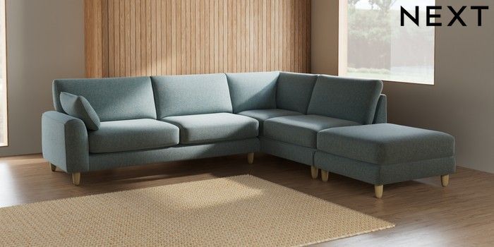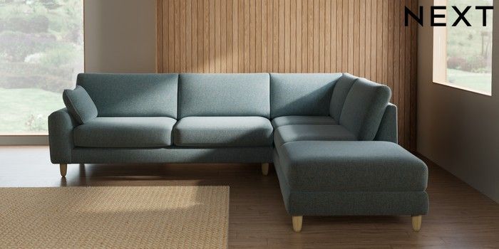 7.2.10 Campbell Large Open End Corner Chaise - Right Hand Chunky Marl Mid Blue High Leg - Light | Made Click here to use our website with more accessibility support, for example screen readers