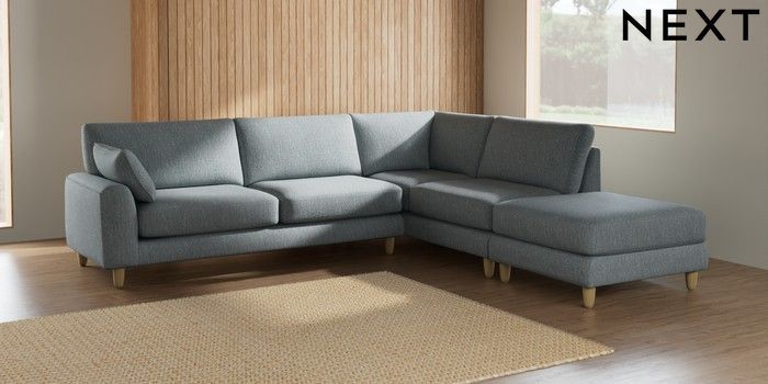 7.2.10 Campbell Large Open End Corner Chaise - Right Hand Chunky Weave Mid Blue High Leg - Light | Made Click here to use our website with more accessibility support, for example screen readers