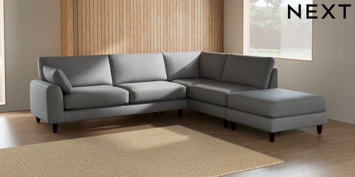 7.2.10 Campbell Large Open End Corner Chaise - Right Hand Chunky Weave Mid Grey High Leg - Dark | Made Click here to use our website with more accessibility support, for example screen readers
