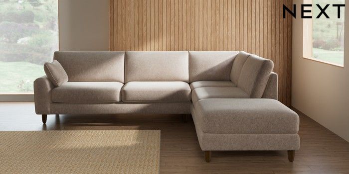 7.2.10 Campbell Large Open End Corner Chaise - Right Hand Cotswold Chenille Light Natural High Leg - Mid | Made Click here to use our website with more accessibility support, for example screen readers
