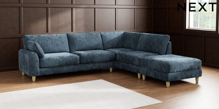 7.2.10 Campbell Large Open End Corner Chaise - Right Hand Distressed Velour Midnight Blue High Leg - Light | Made Click here to use our website with more accessibility support, for example screen readers