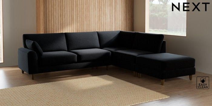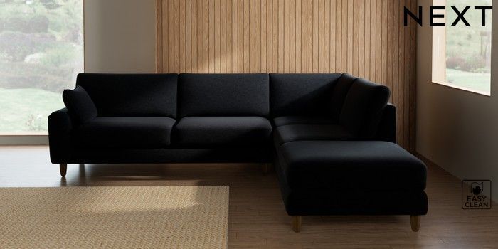 7.2.10 Campbell Large Open End Corner Chaise - Right Hand Fine Chenille Easy Clean Black High Leg - Mid | Made Click here to use our website with more accessibility support, for example screen readers