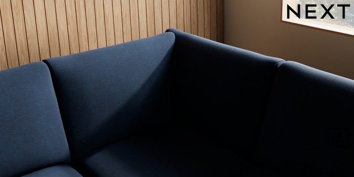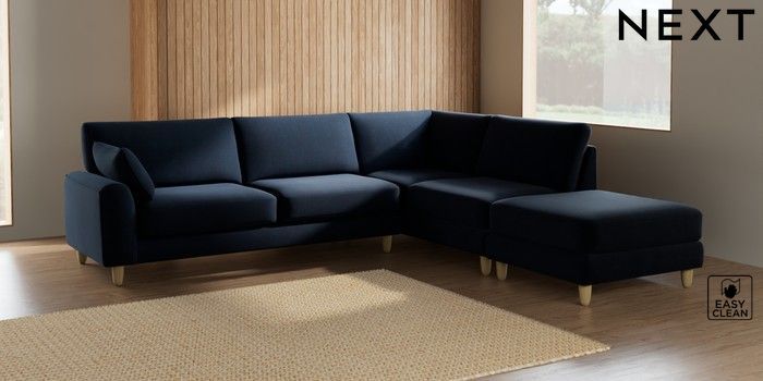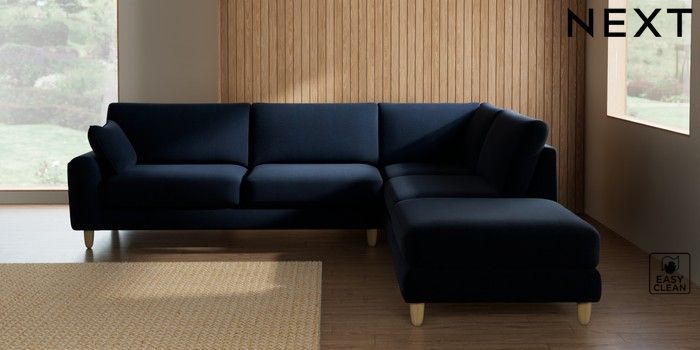 7.2.10 Campbell Large Open End Corner Chaise - Right Hand Fine Chenille Easy Clean Dark Navy Blue High Leg - Light | Made Click here to use our website with more accessibility support, for example screen readers