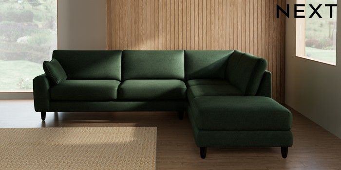 7.2.10 Campbell Large Open End Corner Chaise - Right Hand Luxe Chenille Dark Green High Leg - Dark | Made Click here to use our website with more accessibility support, for example screen readers