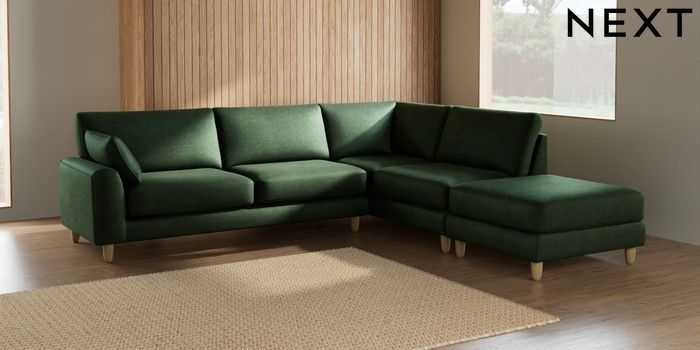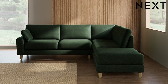 7.2.10 Campbell Large Open End Corner Chaise - Right Hand Luxe Chenille Dark Green High Leg - Light | Made Click here to use our website with more accessibility support, for example screen readers