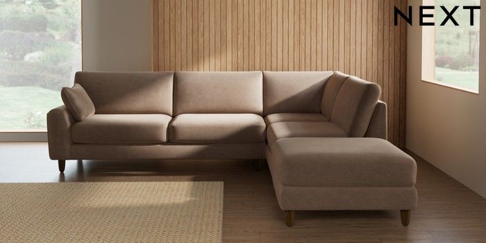 7.2.10 Campbell Large Open End Corner Chaise - Right Hand Luxe Chenille Mid Natural High Leg - Mid | Made Click here to use our website with more accessibility support, for example screen readers
