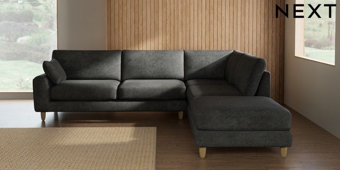 7.2.10 Campbell Large Open End Corner Chaise - Right Hand Plush Chenille Dark Grey High Leg - Light | Made Click here to use our website with more accessibility support, for example screen readers