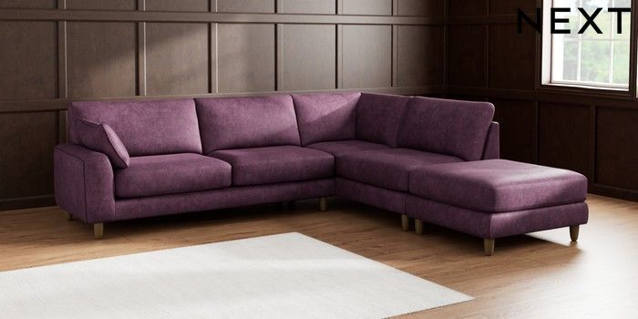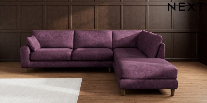7.2.10 Campbell Large Open End Corner Chaise - Right Hand Plush Chenille Dark Plum Purple High Leg - Mid | Made Click here to use our website with more accessibility support, for example screen readers