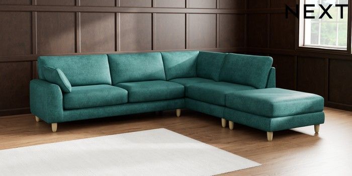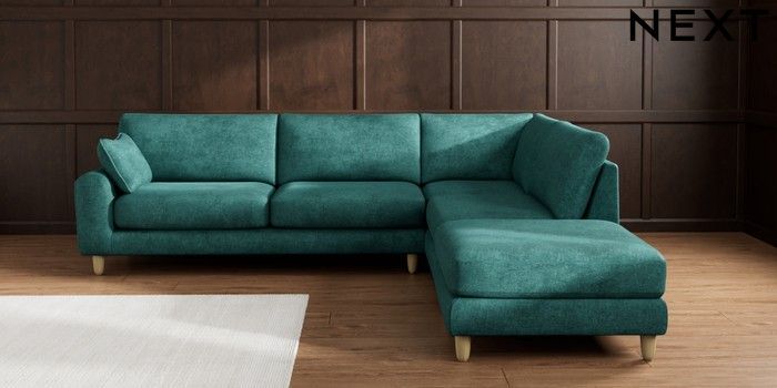 7.2.10 Campbell Large Open End Corner Chaise - Right Hand Plush Chenille Dark Teal Green High Leg - Light | Made Click here to use our website with more accessibility support, for example screen readers