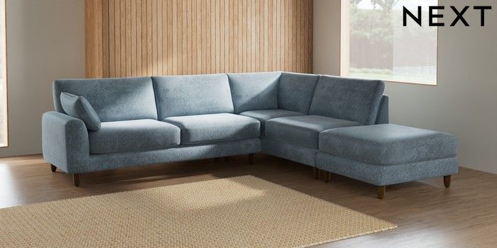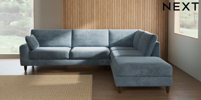 7.2.10 Campbell Large Open End Corner Chaise - Right Hand Plush Chenille Light Blue High Leg - Mid | Made Click here to use our website with more accessibility support, for example screen readers