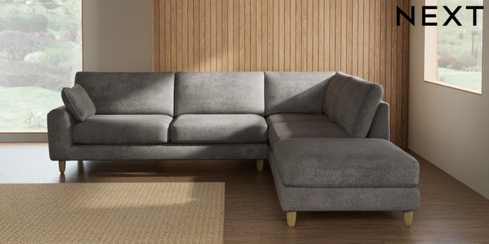 7.2.10 Campbell Large Open End Corner Chaise - Right Hand Plush Chenille Light Grey High Leg - Light | Made Click here to use our website with more accessibility support, for example screen readers