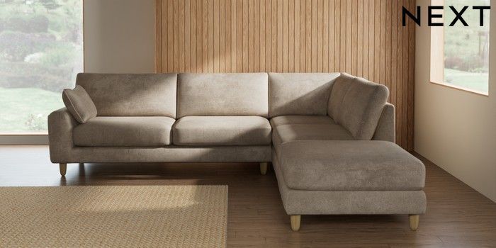 7.2.10 Campbell Large Open End Corner Chaise - Right Hand Plush Chenille Light Natural High Leg - Light | Made Click here to use our website with more accessibility support, for example screen readers