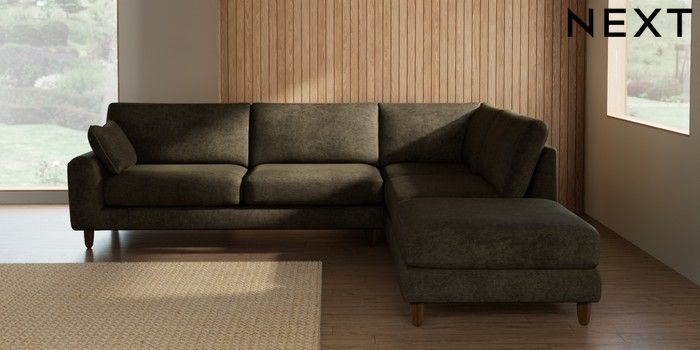 7.2.10 Campbell Large Open End Corner Chaise - Right Hand Plush Chenille Moss Green High Leg - Mid | Made Click here to use our website with more accessibility support, for example screen readers