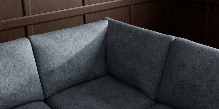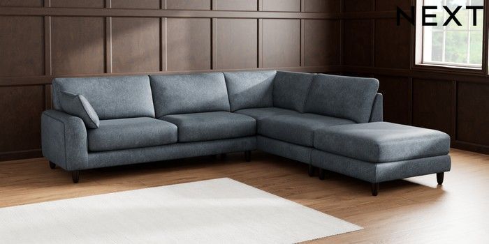 7.2.10 Campbell Large Open End Corner Chaise - Right Hand Plush Chenille Slate Blue High Leg - Dark | Made Click here to use our website with more accessibility support, for example screen readers