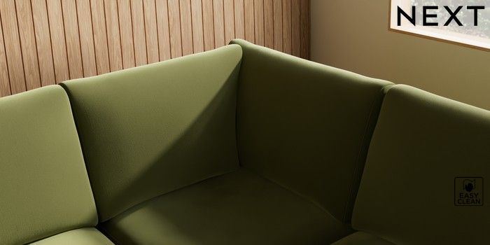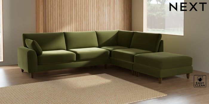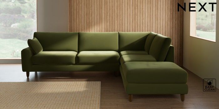 7.2.10 Campbell Large Open End Corner Chaise - Right Hand Plush Velvet Easy Clean Mid Olive Green High Leg - Mid | Made Click here to use our website with more accessibility support, for example screen readers