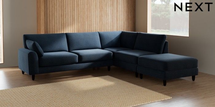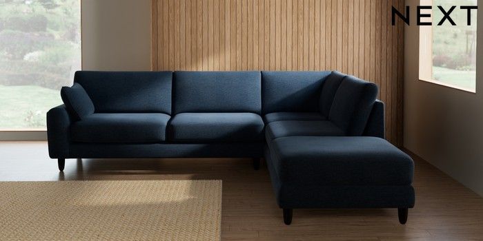 7.2.10 Campbell Large Open End Corner Chaise - Right Hand Ripple Chenille Dark Blue High Leg - Dark | Made Click here to use our website with more accessibility support, for example screen readers