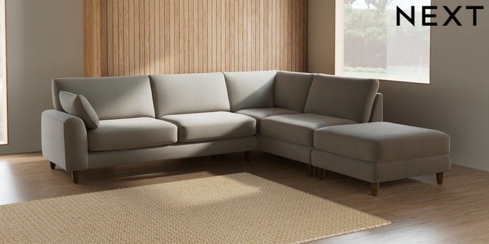 7.2.10 Campbell Large Open End Corner Chaise - Right Hand Ripple Chenille Light Natural High Leg - Mid | Made Click here to use our website with more accessibility support, for example screen readers