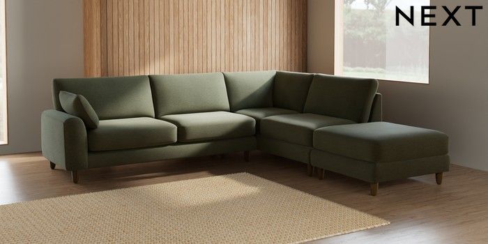 7.2.10 Campbell Large Open End Corner Chaise - Right Hand Ripple Chenille Mid Moss Green High Leg - Mid | Made Click here to use our website with more accessibility support, for example screen readers