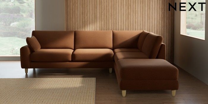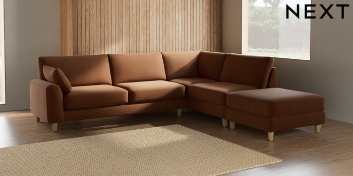 7.2.10 Campbell Large Open End Corner Chaise - Right Hand Ripple Chenille Mid Rust Brown High Leg - Light | Made Click here to use our website with more accessibility support, for example screen readers