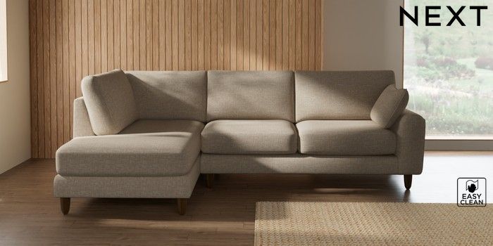 7.2.10 Campbell Medium Corner Chaise - Left Hand Boucle Weave Easy Clean Dark Natural High Leg - Mid | Made Click here to use our website with more accessibility support, for example screen readers