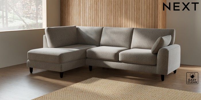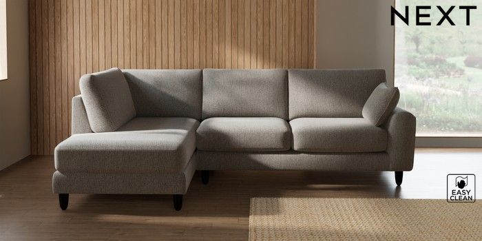 7.2.10 Campbell Medium Corner Chaise - Left Hand Chunky Boucle Easy Clean Dove High Leg - Dark | Made Click here to use our website with more accessibility support, for example screen readers