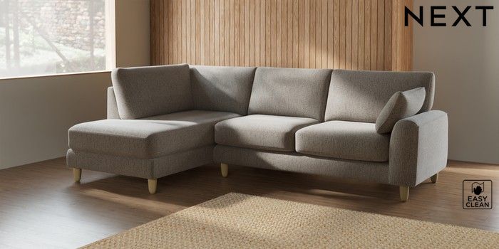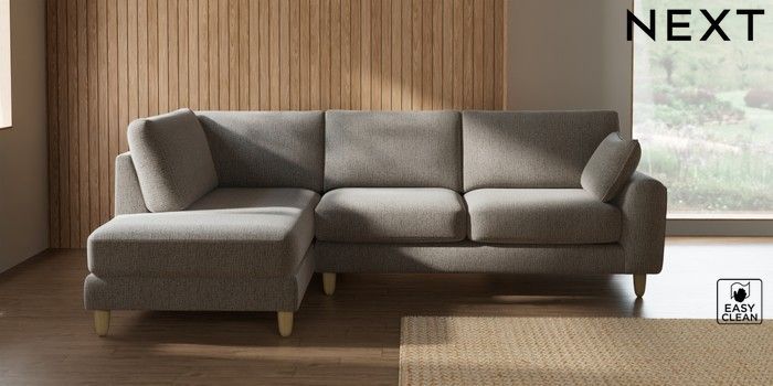 7.2.10 Campbell Medium Corner Chaise - Left Hand Chunky Boucle Easy Clean Dove High Leg - Light | Made Click here to use our website with more accessibility support, for example screen readers