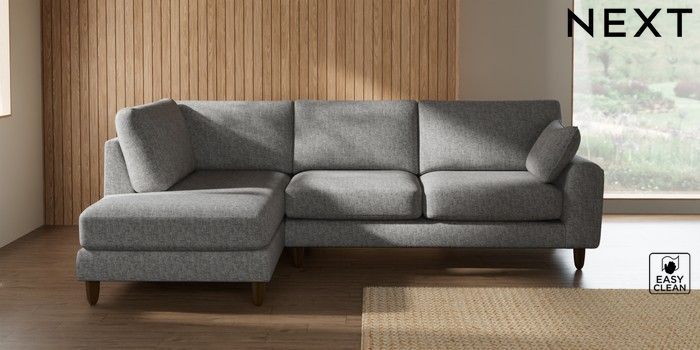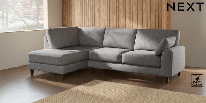 7.2.10 Campbell Medium Corner Chaise - Left Hand Chunky Boucle Easy Clean Light Grey High Leg - Mid | Made Click here to use our website with more accessibility support, for example screen readers