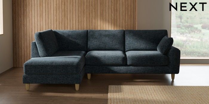 7.2.10 Campbell Medium Corner Chaise - Left Hand Chunky Chenille Dark Navy Blue High Leg - Light | Made Click here to use our website with more accessibility support, for example screen readers