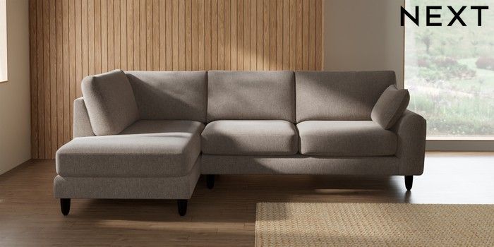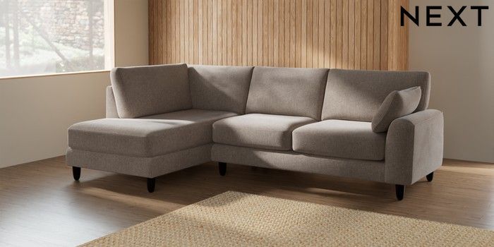 7.2.10 Campbell Medium Corner Chaise - Left Hand Chunky Chenille Light Dove High Leg - Dark | Made Click here to use our website with more accessibility support, for example screen readers