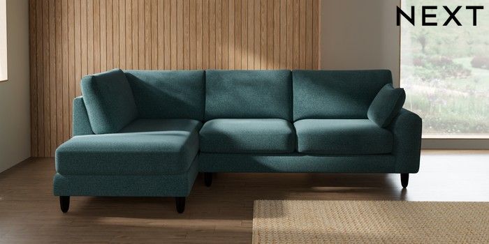 7.2.10 Campbell Medium Corner Chaise - Left Hand Chunky Chenille Mid Teal Green High Leg - Dark | Made Click here to use our website with more accessibility support, for example screen readers