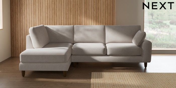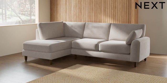 7.2.10 Campbell Medium Corner Chaise - Left Hand Chunky Chenille Oyster High Leg - Mid | Made Click here to use our website with more accessibility support, for example screen readers