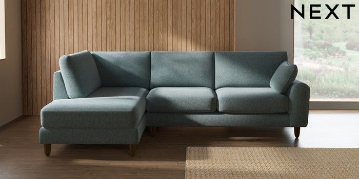 7.2.10 Campbell Medium Corner Chaise - Left Hand Chunky Marl Mid Blue High Leg - Mid | Made Click here to use our website with more accessibility support, for example screen readers