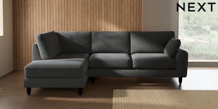 7.2.10 Campbell Medium Corner Chaise - Left Hand Chunky Texture Dark Grey High Leg - Dark | Made Click here to use our website with more accessibility support, for example screen readers
