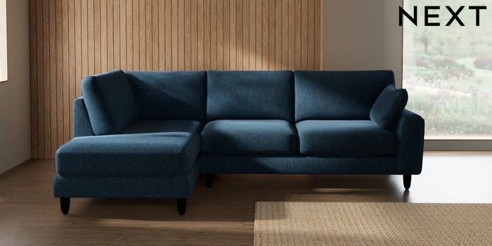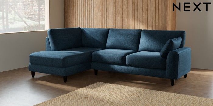 7.2.10 Campbell Medium Corner Chaise - Left Hand Cotswold Chenille Dark Blue High Leg - Dark | Made Click here to use our website with more accessibility support, for example screen readers