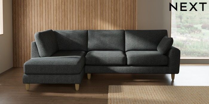7.2.10 Campbell Medium Corner Chaise - Left Hand Cotswold Chenille Dark Grey High Leg - Light | Made Click here to use our website with more accessibility support, for example screen readers