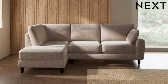 7.2.10 Campbell Medium Corner Chaise - Left Hand Cotswold Chenille Light Natural High Leg - Dark | Made Click here to use our website with more accessibility support, for example screen readers