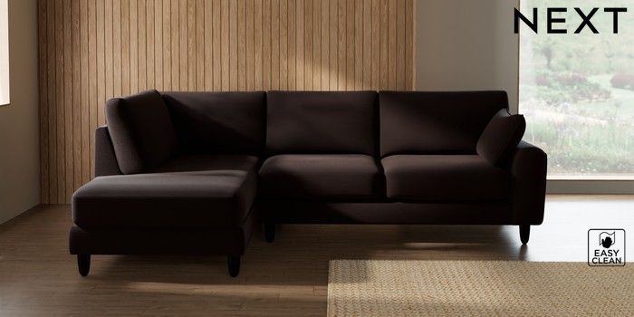 7.2.10 Campbell Medium Corner Chaise - Left Hand Fine Chenille Easy Clean Chocolate Brown High Leg - Dark | Made Click here to use our website with more accessibility support, for example screen readers