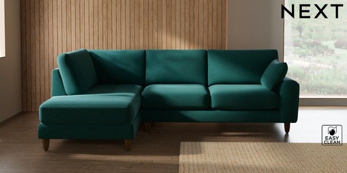 7.2.10 Campbell Medium Corner Chaise - Left Hand Fine Chenille Easy Clean Dark Juniper Green High Leg - Mid | Made Click here to use our website with more accessibility support, for example screen readers