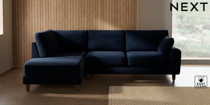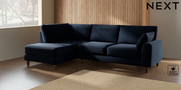 7.2.10 Campbell Medium Corner Chaise - Left Hand Fine Chenille Easy Clean Dark Navy Blue High Leg - Mid | Made Click here to use our website with more accessibility support, for example screen readers