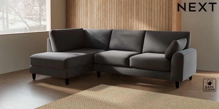 7.2.10 Campbell Medium Corner Chaise - Left Hand Fine Chenille Easy Clean Dark Smoke Grey High Leg - Dark | Made Click here to use our website with more accessibility support, for example screen readers