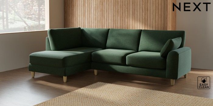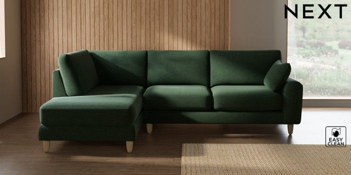 7.2.10 Campbell Medium Corner Chaise - Left Hand Fine Chenille Easy Clean Mid Khaki Green High Leg - Light | Made Click here to use our website with more accessibility support, for example screen readers