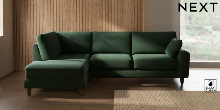 7.2.10 Campbell Medium Corner Chaise - Left Hand Fine Chenille Easy Clean Mid Khaki Green High Leg - Mid | Made Click here to use our website with more accessibility support, for example screen readers