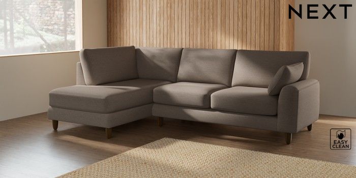 7.2.10 Campbell Medium Corner Chaise - Left Hand Fine Chenille Easy Clean Mid Taupe Brown High Leg - Mid | Made Click here to use our website with more accessibility support, for example screen readers