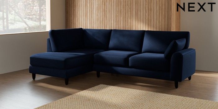 7.2.10 Campbell Medium Corner Chaise - Left Hand Luxe Chenille Navy Blue High Leg - Dark | Made Click here to use our website with more accessibility support, for example screen readers