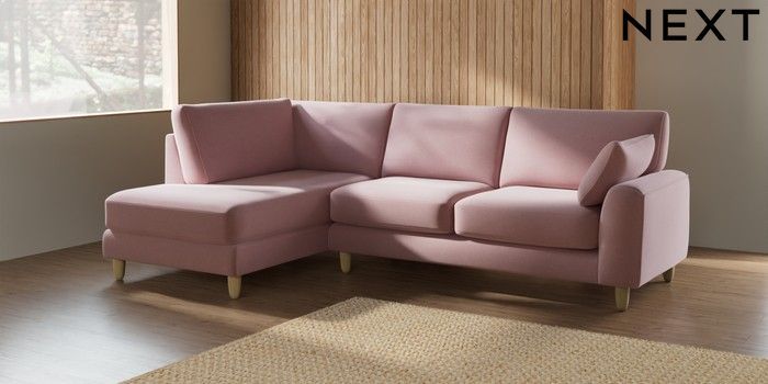 7.2.10 Campbell Medium Corner Chaise - Left Hand Natural Mix Light Rose Pink High Leg - Light | Made Click here to use our website with more accessibility support, for example screen readers